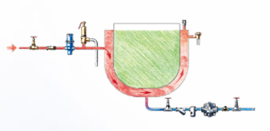 對于帶溫度控制的熱交換器,浮球疏水閥是變負荷工況的理想選擇。起機階段空氣迅速排放,系統升溫迅速。