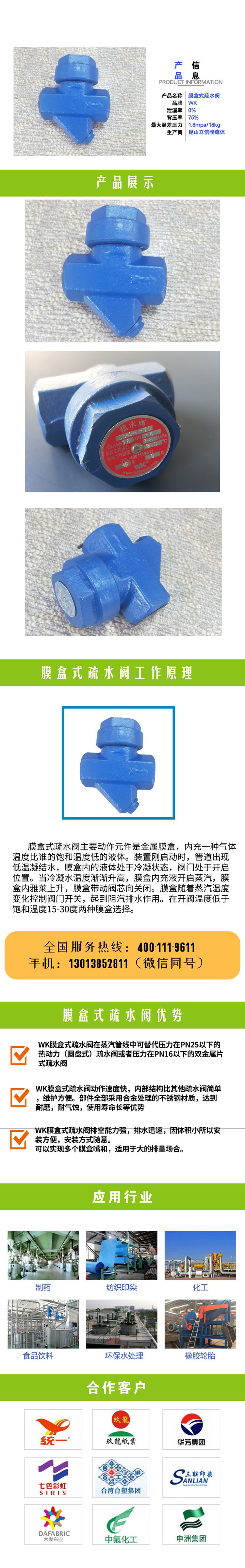 WK膜盒式蒸汽疏水閥動(dòng)作速度快,內(nèi)部結(jié)構(gòu)比其他疏水閥簡(jiǎn)單,維護(hù)方便,部件全部采用合金處理的不銹鋼材質(zhì),達(dá)到耐磨,耐氣蝕,使用壽命等優(yōu)勢(shì)。