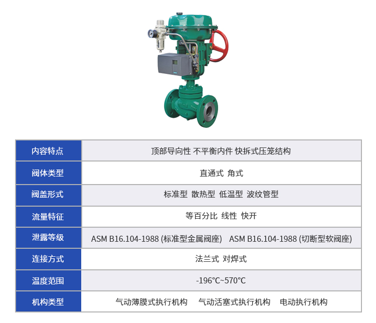 該類型調(diào)節(jié)閥使用與工況壓差較小的場(chǎng)合,關(guān)閉嚴(yán)密,適用于對(duì)介質(zhì)流量或者壓力的調(diào)節(jié)